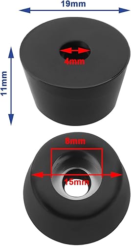 SG Store Lot de 20 pieds ronds en caoutchouc pour planche à découper - Pour caisses de vol, haut-parleurs, amplificateurs, armoires, meubles - 11 x 15 x 19 mm - Noir