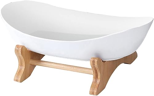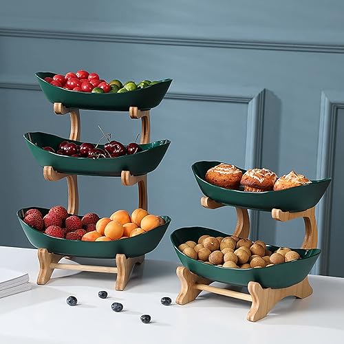 RuiGuio Bol de Fruits en Céramique, Grande Panier de Fruits Céramique avec Cadre en bois Naturel, Porte-Fruits en Céramique pour Décor de Table Desserts Fruits Légumes, Vert Foncé (#C)