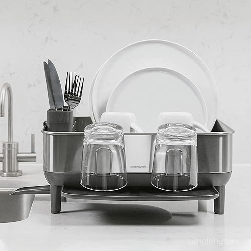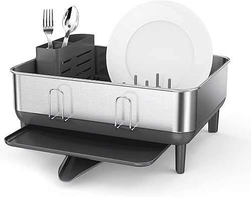 simplehuman KT1181 égouttoir à cadre en acier, égouttoir à vaisselle de cuisine, gris, acier inoxydable brossé