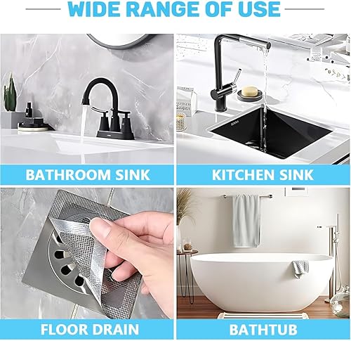 100 Piecès Sticker Jetable pour Attrape Cheveux Douche, Filtre Cheveux Douche, pour éviter Les Drains Bouchés, pour Les Accessoire Salle de Bain, Les Essentiels de l'appartement pour la l'évier
