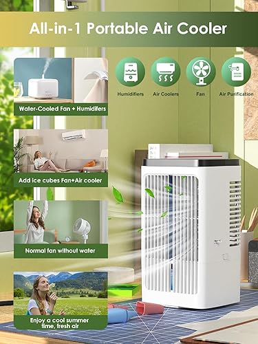 Climatiseur Mobile 1.2L, USB ventilateur, 4 Vitesses,2 Modes,lumières colorées, oscillation de 90°