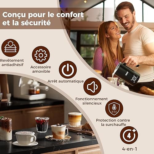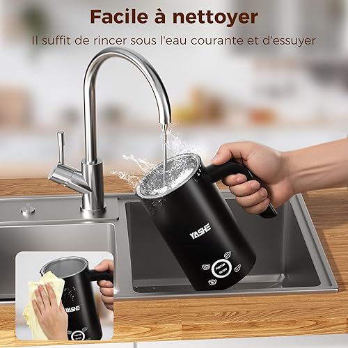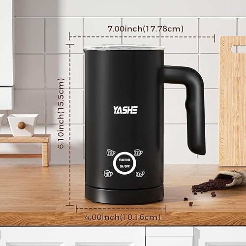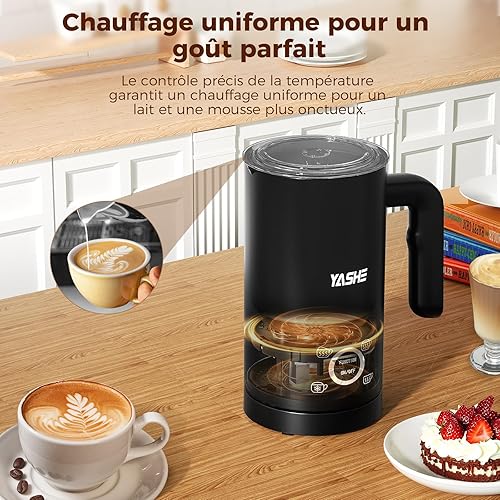 YASHE Mousseur à Lait Électrique 4 en1, 300ml Chauffe-Mousse, Silencieux & Facile à Nettoyer, pour Lattes, Cappuccinos, Chocolat, 500W