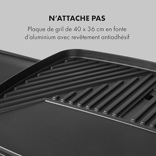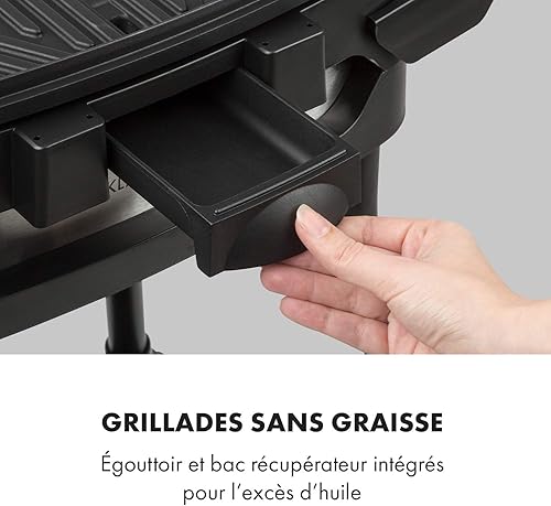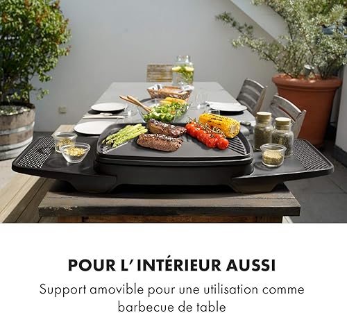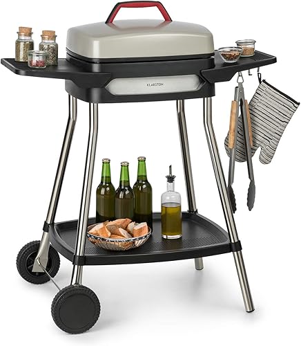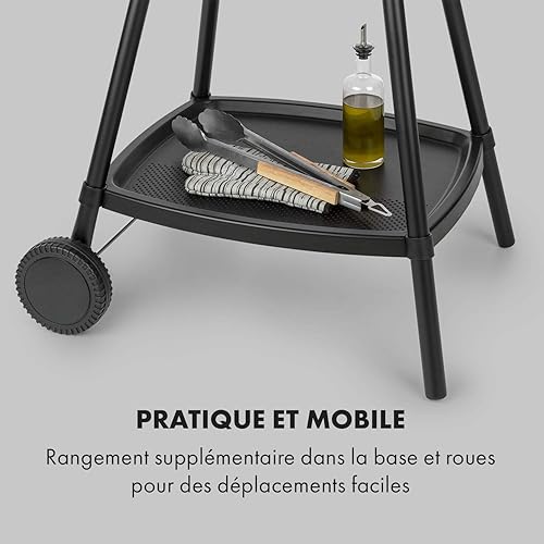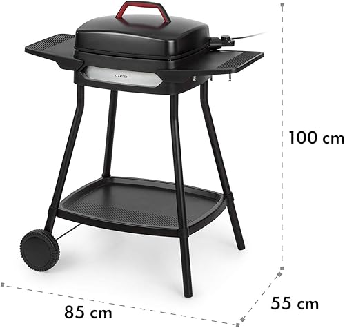 Klarstein Gatsby Gril électrique sur pied Gril de table : 2000 W, EasyGrill Concept, surface de gril: 40 x 36 cm/aluminium moulé sous pression/antiadhésif/couvercle, deux tables d'appoint, noir