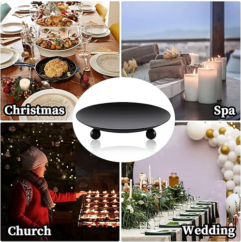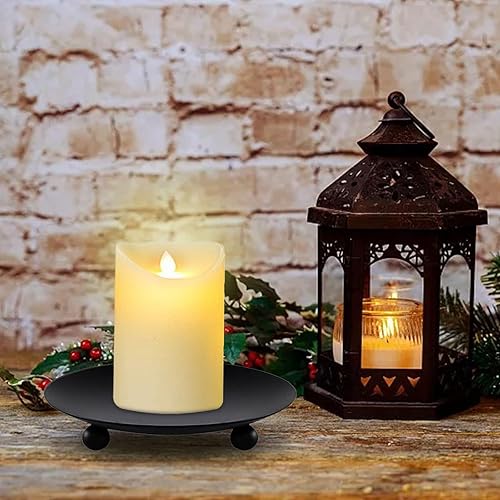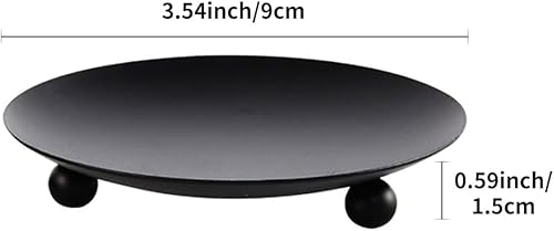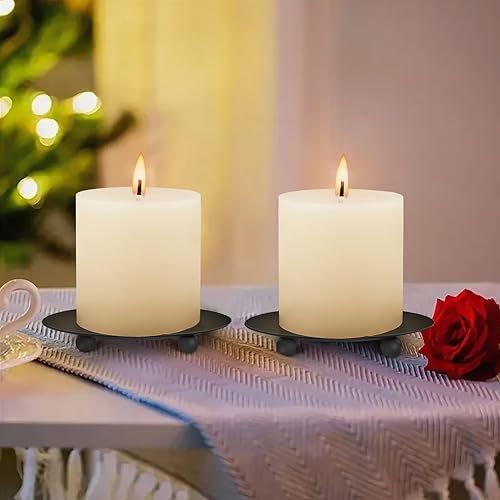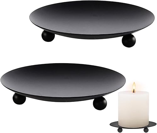Lot de 2 bougeoirs piliers de 9 cm - Soucoupe ronde - Porte-bougie de table - Photophore en métal - Noir - Pour décoration de table de mariage, fête, décoration, couronne de l'Avent