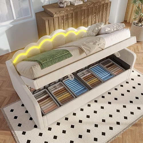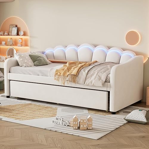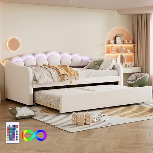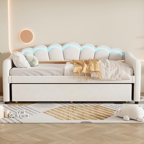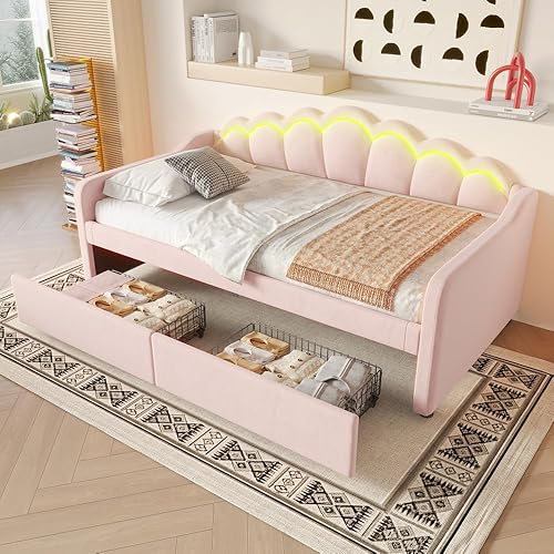Seyakany Canapé lit 2 Places Convertible 90x200 cm avec LED,Lit de Repos avec lit gigogne 180x200 cm,(sans Matelas),Velours,Bande LED Changeante de Couleur,Rose (sans Matelas)