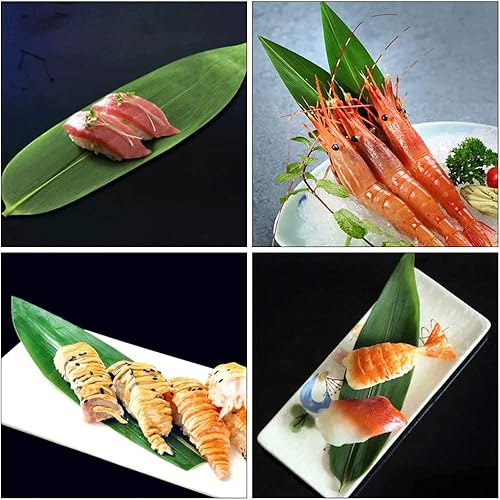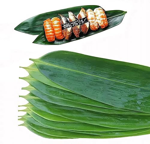WINIAER Lot de 100 feuilles de bambou pour sushis, décoration de sushis, feuilles de bambou pour la cuisine, feuilles de bananier pour sashimi