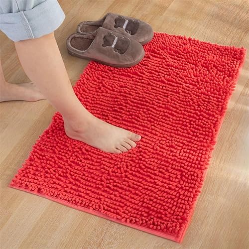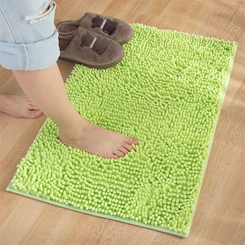 Reyox Tapis de Bain Microfibre de Chenille Absorbant, Tapis de Salle de Bain à Poils Longs Antidérapant Doux Pomme Verte 30 x 50 cm