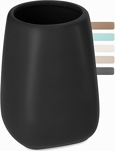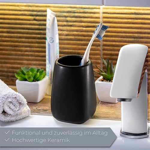 Mug de Salle de Bain KADAX, Tasse à Brosse à Dents en céramique, Tasse de Salle de Bain, Porte Brosse à Dents, Tasse à Eau, Finition Mate (Noir 2)