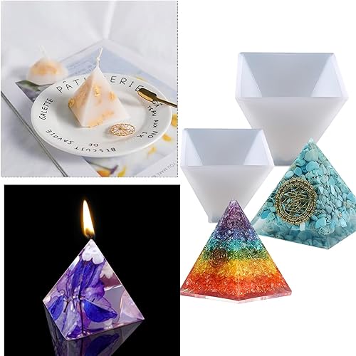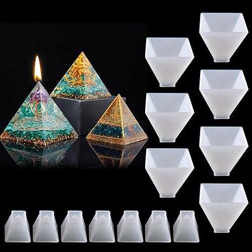 LIFEDYLUK Lot de 14 moules en résine époxy pyramide, en silicone pyramide, résine époxy, moule pyramide, moule en silicone, moule en résine 3D, ornement pour bijoux artisanaux