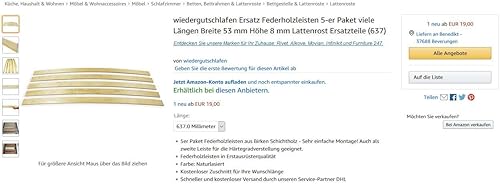 wiedergutschlafen Lot de 5 lattes de rechange en bois - Plusieurs longueurs - Largeur : 53 mm - Hauteur : 8 mm - Pièces de rechange (920)
