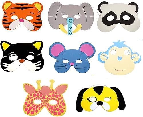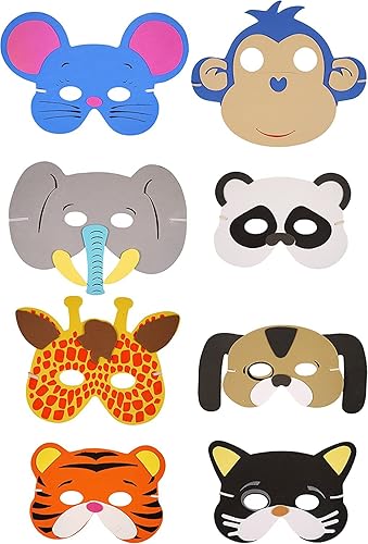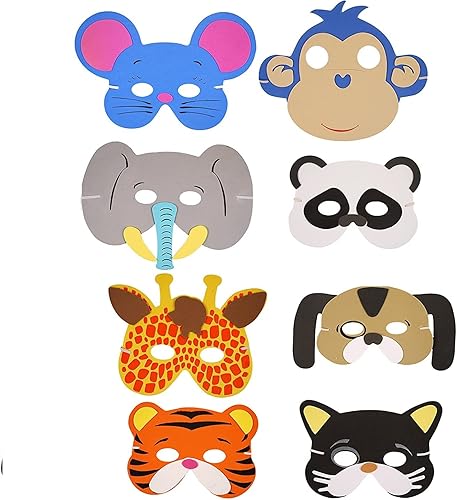 SHATCHI Eva Foam Animal Face Masks For Kids Birthday Party Bag Fillers Masquerade, Christmas, Halloween Fancy Dress Accessories Assorted