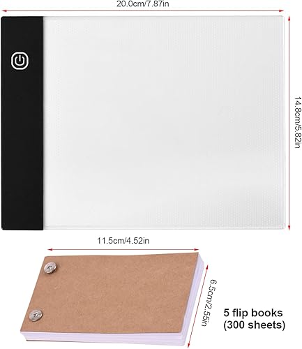 Kit de livre à rabat portable avec tablette lumineuse LED, 3 niveaux de contrôle de la luminosité, 300 feuilles de papier Flipbook avec vis Bg pour le traçage et le dessin