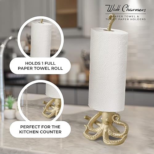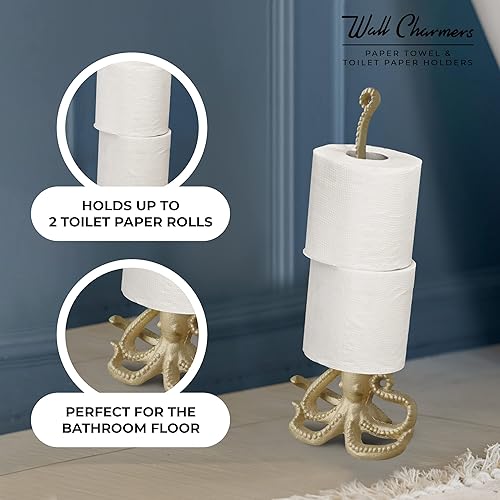 WallCharmers Porte-Serviettes en Papier doré, Support de Papier Toilette ou de Cuisine pour Sol ou comptoir, Pieuvre dorée