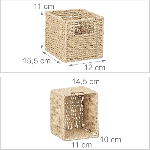 Relaxdays Etagere 4 cubes rangement panier amovible corbeille bois noyer couloir chambre cuisine montage mural, nature 18x61.5x16 cm