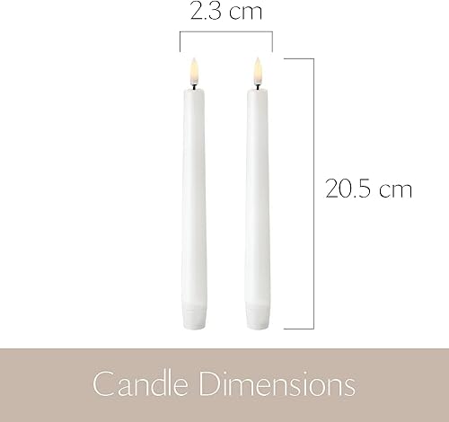 UYUNI Éclairage Bougie LED conique sans flamme | Fausse bougie à piles avec flamme 3D vacillante, blanc nordique, 2,3 x 20 cm (lot de 2)