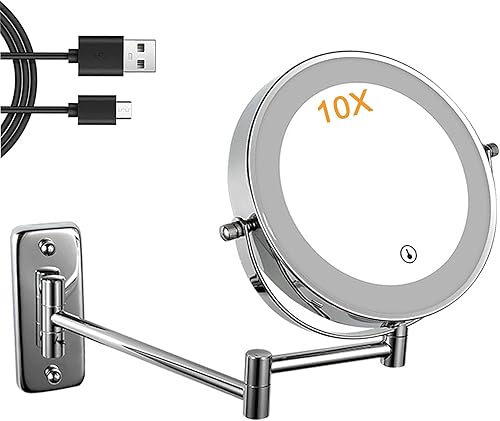 Miroir cosmétique LED GelldG, montage mural, 8 pouces, pivotant à 360°, lumineux LED, charge USB, pour salle de bain et spa