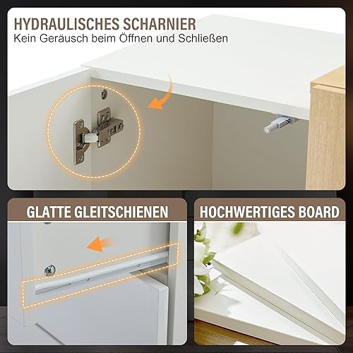 Physport Sideboard Blanc Brillant, Buffet de Salle à Manger Moderne avec Rangement, Armoire de Stockage Moderne Minimaliste Couleur Bois, 160 * 37 * 75 cm