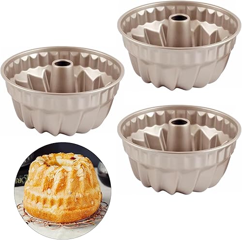Qixuer Moule Kouglof Mini Ø 10.8 cm, Lot de 3 Moule à Gâteau Rond Moule à Kougelhopf Premium Moule à Kougelkklaxon pour Petits Gâteaux, Revêtement Antiadhésif, Acier au Carbone