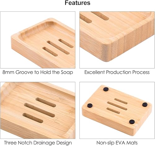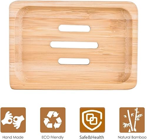 Mutsitaz 2 Pcs Bambou Naturel en Bois Porte Savons Boîte à Savon ,pour Cuisine Salle de Bains Éponge Savon
