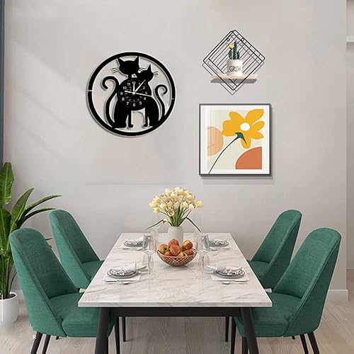Smotly Horloge murale électronique en vinyle, motif couple de chats, horloge murale pour les amoureux des animaux de compagnie, décoration murale de la maison.