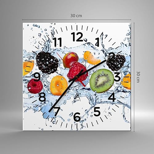 Horloge Murale Design Moderne Eau fruits frais nourriture 30x30cm Petit Pendule murale en verre Cuisine Salon Chambre Silencieuse Originale Wall Clock Décoration Murale Art Wall Decor C4AC30x30-2675
