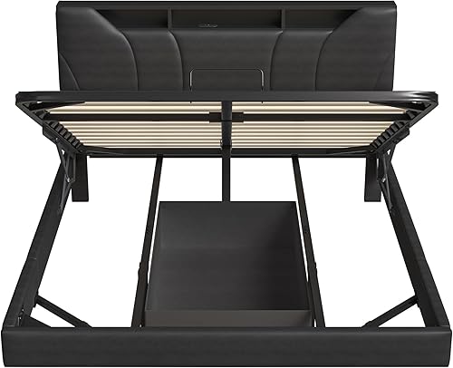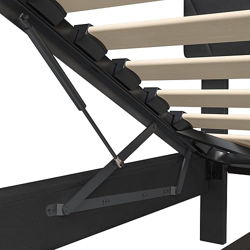 KRYZOR Cadre de Lit 140x200 cm avec Sommier, Lit Flottant 140x200 avec Rangement et Éclairage LED, Lits Coffre avec USB Port, Lits Double Capitonné, Structure Stable, Matériau PU (Noir, 140x200 cm)