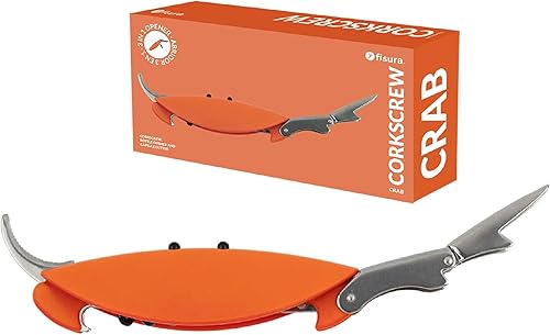 Fisura - Tire-bouchon original “crabe”. Tire-bouchon en acier inoxydable avec coupe-capsule intégré. Ouvre-bouteille de vin et décapsuleur amusant. Ouvre-bière cadeau.