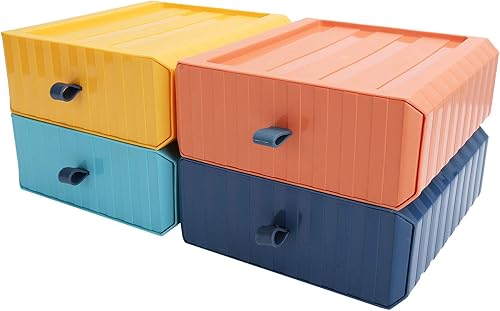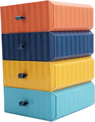 Tissting 4 Pièces BoîTe De Rangement Tiroir En Plastique éTagèRe, Boite Rangement Bureau Organisateur de Cosmétiques Tiroir de Maquillage Empilable pour Bureaux Coiffeuses Bureaux