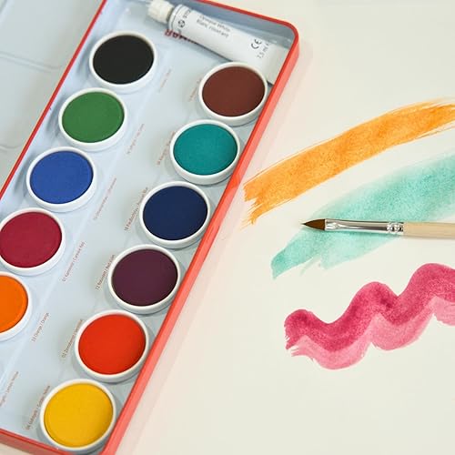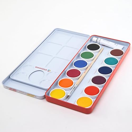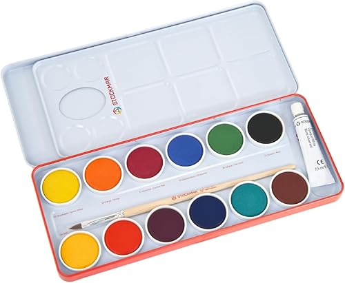 Stockmar Boîte de couleurs opaques (12 couleurs de peinture pour poêles, tube de peinture blanc opaque, pinceau et palette)