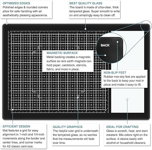OTCRAFT Tapis de découpe magnétique en verre résistant à la chaleur 40 x 26 cm avec aimants, quadrillage et mesures pour la découpe, l'estampage, les supports mixtes, le gaufrage à la chaleur et les