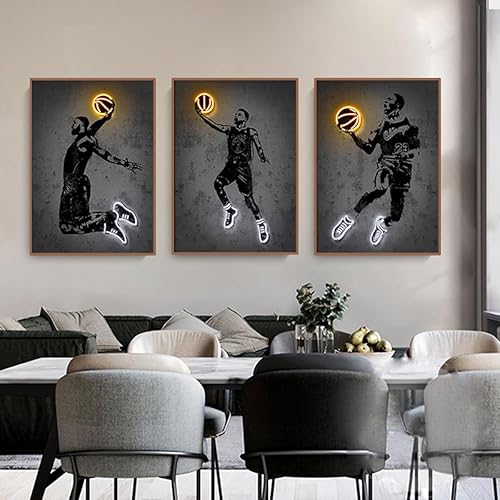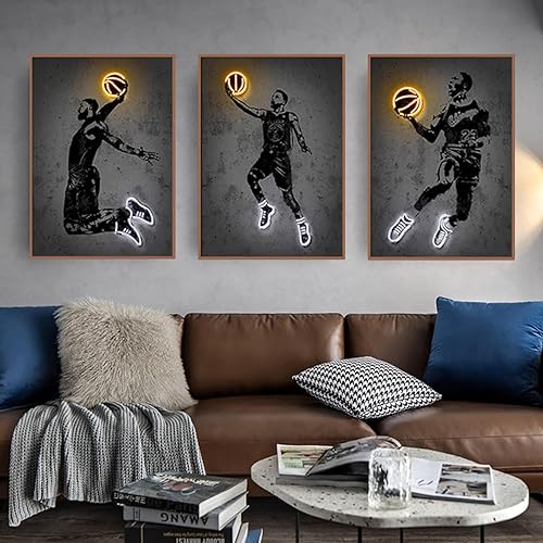Lot de 3 posters de qualité supérieure - Tableaux sur toile cool - Motif joueur de basket-ball - Images d'art mural - Affiches et impressions d'art - Décoration d'intérieur - Tableau mural pour salon