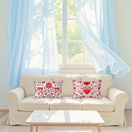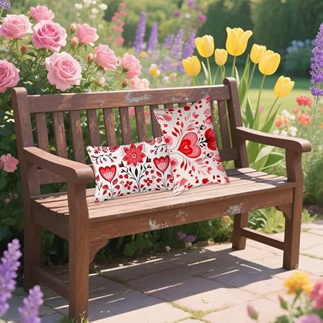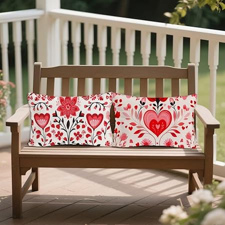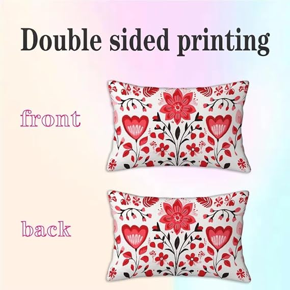 Housse Coussin Exterieur Impermeable 60x90 cm, Rectangulaire Housse de Coussin pour Salon de Jardin, Lot de 2 Rouge Taie D'oreiller en Impermeable Lin,Jardin Balcon Canapé Salon Decoration, Fleur T701