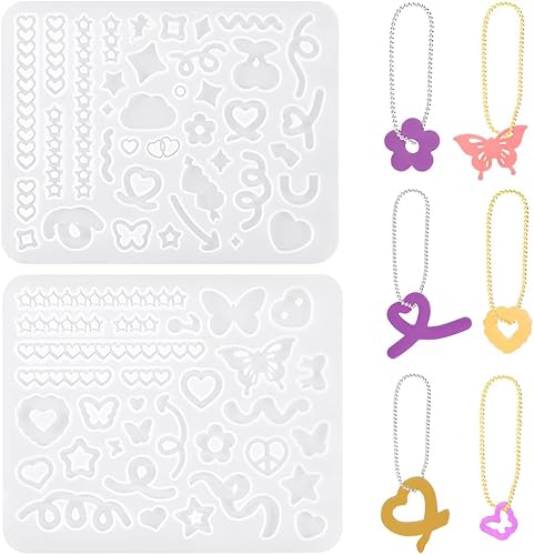 Nifocc Lot de 2 moules en résine époxy pour bijoux - Pendentif - Boucles d'oreilles - En silicone - En forme de cœur - Étoile - Papillon - Bijoux en résine coulée - Moule en cristal - Pour bricolage