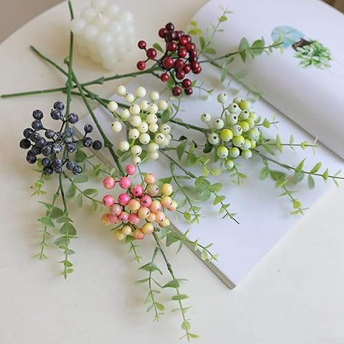 Aprilsunnyzone Baies artificielles, baies rouges foncées réalistes, fausses fleurs d'eucalyptus, tiges de verdure artificielles, branches de baies artificielles pour la maison (rose)