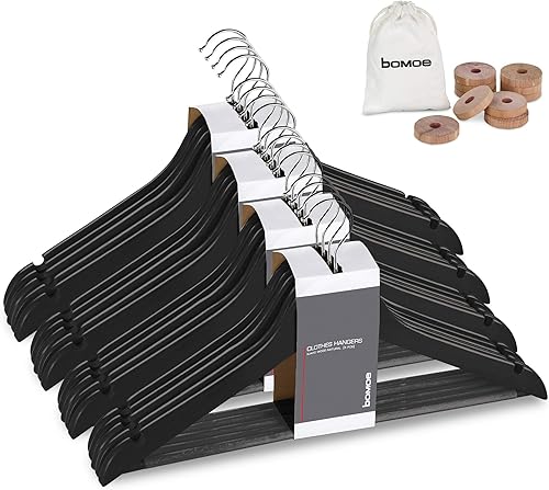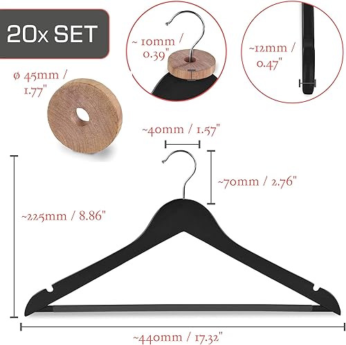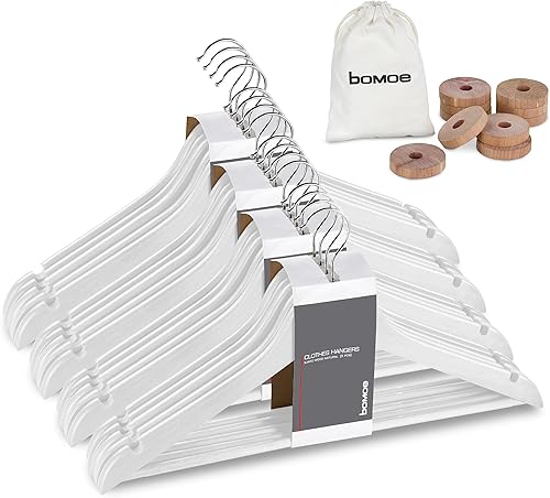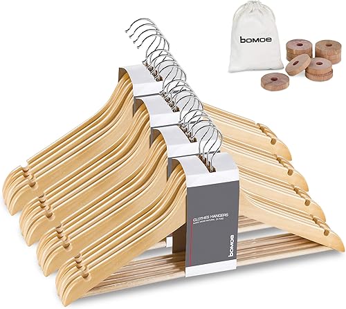 Bomoe Cintres en Bois Nature - Lot de 20 pour Adulte Certifiés FSC®, Pivotant 360°, Barre Antiglisse avec Encoches d'Épaule - Modèle Sjard