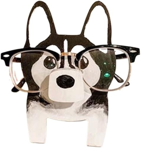 Porte Lunettes Étagère à lunettes en forme d'animaux 3D, sculpture en bois, présentoir de lunettes de soleil, fournitures de support, étagères mignonnes for la maison, accessoires de décoration(Husky)