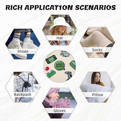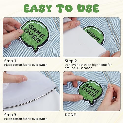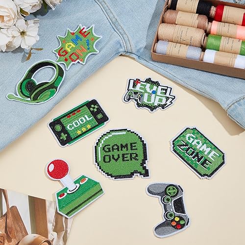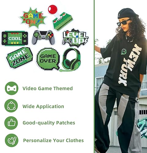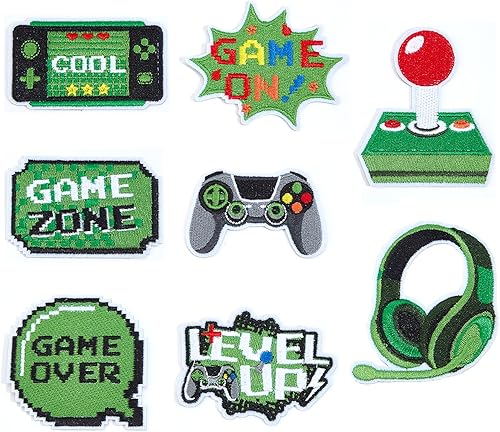 Let'S In Style 8 pièce de Patchs Brodés pour Jeux Vidéo Applique Brodée à Coudre Ou à Repasser Motif Jeu Pixelisé Vert Couture D'Embellissements pour Jeans Vestes Vêtements