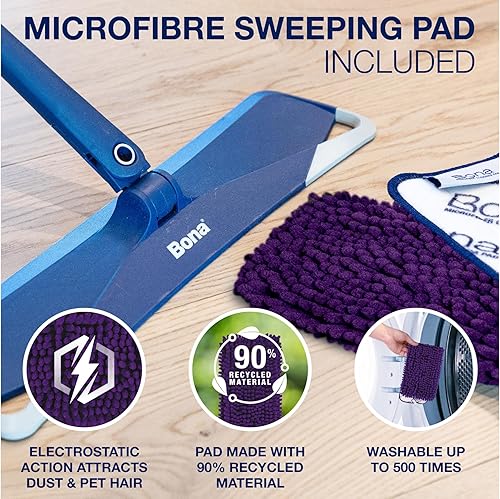 Bona - Balai avec Pads en Microfibre Premium Bona spécial Animaux - Balai nettoyant - Élimine Les Poils d'animaux - Enlève Les Poils de Chats et de Chiens, Purple
