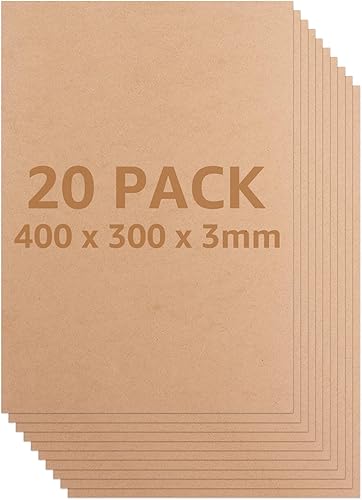 AHAQU Lot de 20 planches en bois MDF de 3 mm d'épaisseur, 40 x 30 cm, feuilles vierges en MDF pour peinture, modélisation, gravure, chantournage, arts