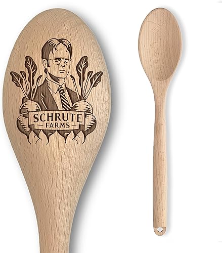 The Laser Factory Cuillère en bois inspirée de The Office Dwight Schrute – Inscription Schrute Farms – Cadeau de cuisine amusant pour homme et femme – Article de fan non officiel (Schrute Farms)