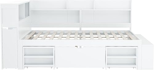 Sapgaks Lit Enfant 140x200 cm avec tiroirs,bibliothèque et Armoire de Rangement,lit Simple,lit avec Rangement,lit 2 Personne,Cadre de lit 140x200 avec sommier à Lattes,Blanc