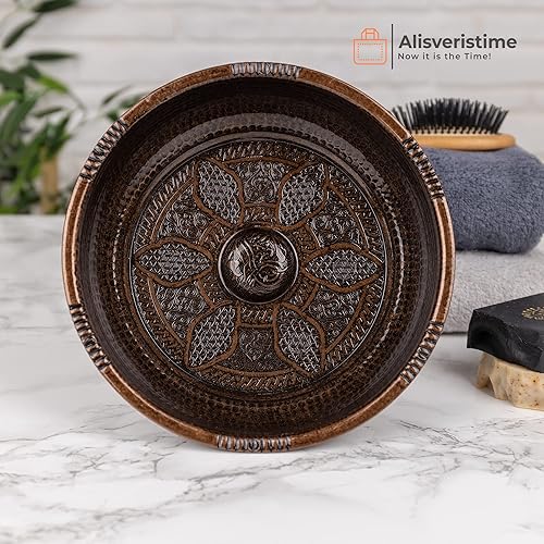 Alisveristime Bol de hammam traditionnel turc avec motifs authentiques (440 g) en zinc (20 cm de diamètre) (cuivre antique)