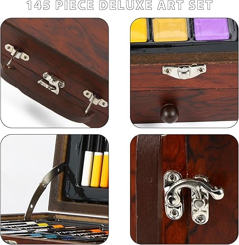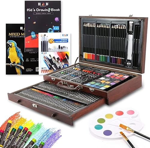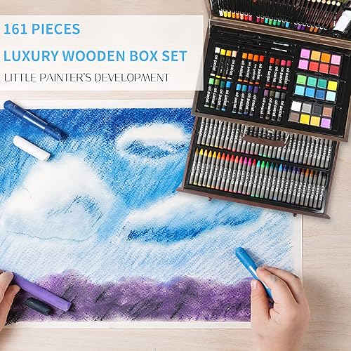 Ensemble de peinture artistique de luxe avec boîte en bois, 161 pièces avec pinceaux et bloc à croquis, kit de dessin professionnel pour adultes
