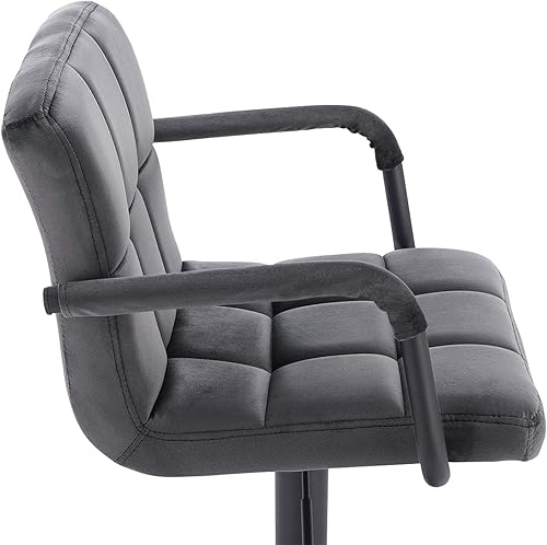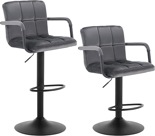 WOLTU Lot de 2 Tabourets de Bar Gris Foncé Assise rembourrée en Velours,Rotatif Réglable en Hauteur Pied Noir en métal
