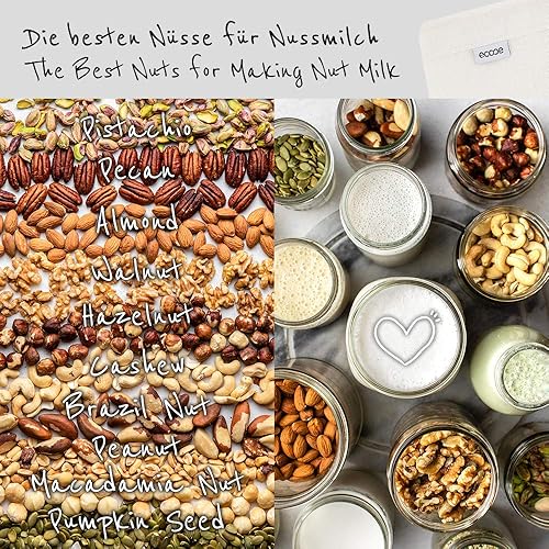 ecooe 1 sac à lait de noix en chanvre naturel - 28 x 30 cm - Pour lait de noix, végétalien, lait d'amande, lait de noisette, chiffon filtrant lavable pour jus de fruits et café