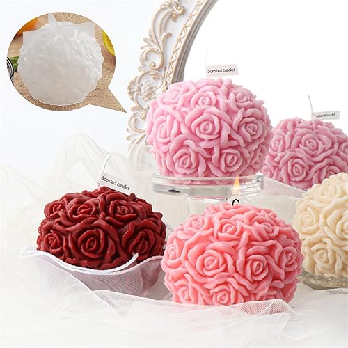 Ezydka Moule à Bougies 2 Pièces Moules à Bougie en Silicone, Moule pour Bougie à Boule de Rose, Moule Bougie Silicone pour Bougie Parfumée, Saint Valentin, Ornements Décoratifs