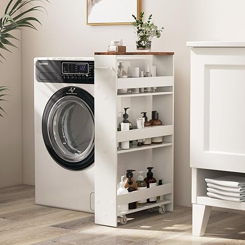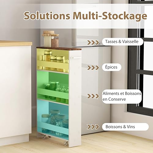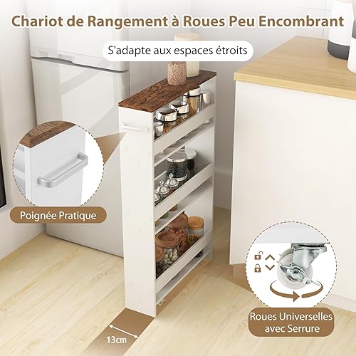 GOPLUS Chariot de Rangement Cuisine, Hauteur 80,5cm, Desserte à roulettes avec 4 roulettes 360°, Poignée Latérale, Meuble Cuisine pour Cuisine,Salle de Bain,47,5x13x80,5cm