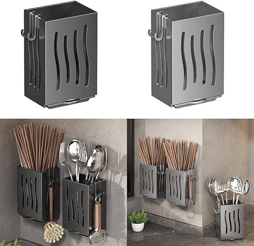 Porte-couverts mural avec plateau d'égouttement pour cuisine (noir)