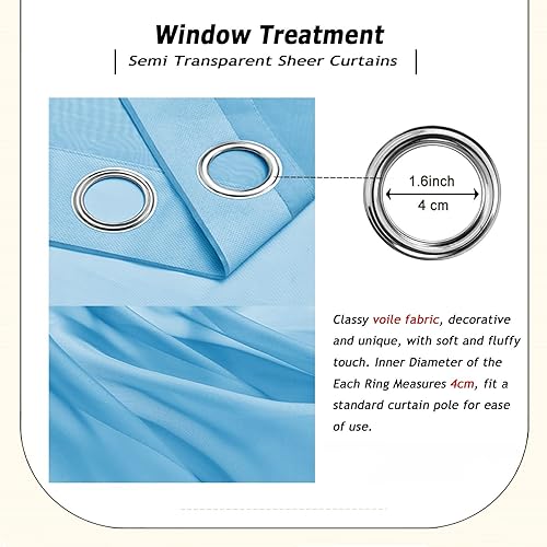 LIUNADM Translucides Voilage à Oeillets Rideaux 225 x 90 cm Oeillets Isolation Lumiere Anti UV Decoration Rideau Occultant avec Œillets pour Porte Salon Chambre Cuisine Dressing, Bleu
