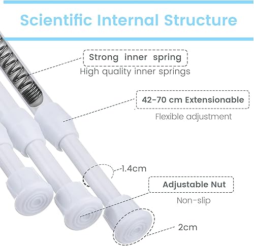 MUHOO 3 Pièces Tringle à Rideau, Extensible Tringles à Rideaux, Montage Sans Vis ni Perçage, Réglable Tringle a Rideau(Blanc, 42-70cm)